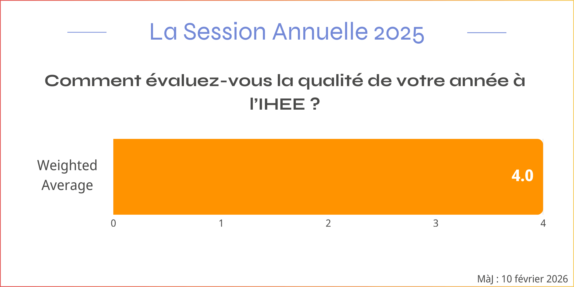 Parmi les questions posées figurait notamment l’évaluation de la qualité globale de la Session Annuelle. Voici leurs réponses :